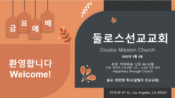 [둘로스 선교교회] 11/22/2024 금요예배 LIVE