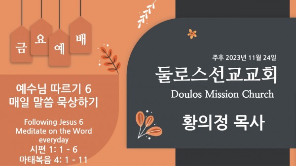 [둘로스 선교교회] 11/22/2024 금요예배 LIVE