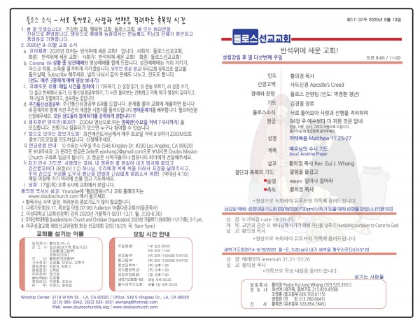 제목: 구원의 은혜에 감사하라! 본문: 로마서 10:9-15. 설교자: 황의정 목사 추수감사절에 감사를 묵상…