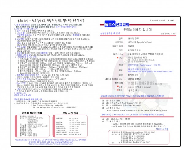 제목: 구원의 은혜에 감사하라! 본문: 로마서 10:9-15. 설교자: 황의정 목사 추수감사절에 감사를 묵상…