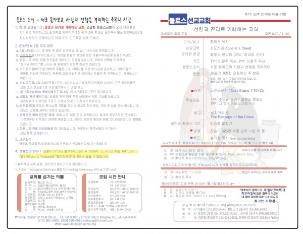 제목: 구원의 은혜에 감사하라! 본문: 로마서 10:9-15. 설교자: 황의정 목사 추수감사절에 감사를 묵상…