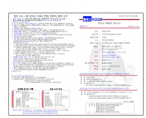 [둘로스 선교교회] 11/22/2024 금요예배 LIVE