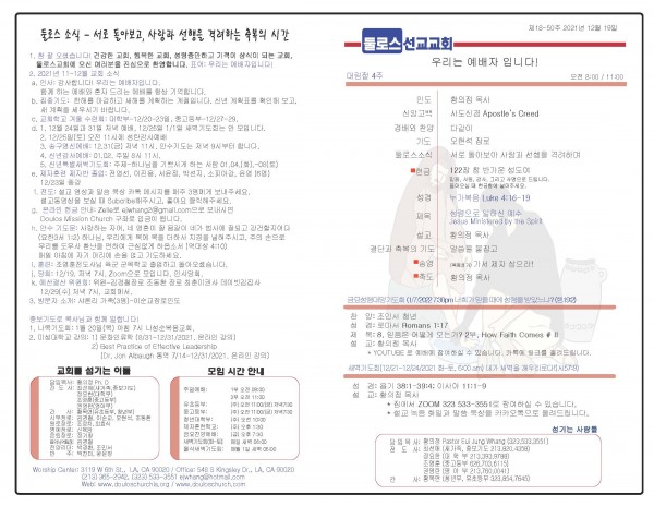 [둘로스 선교교회] 12/13/2024 금요예배 LIVE