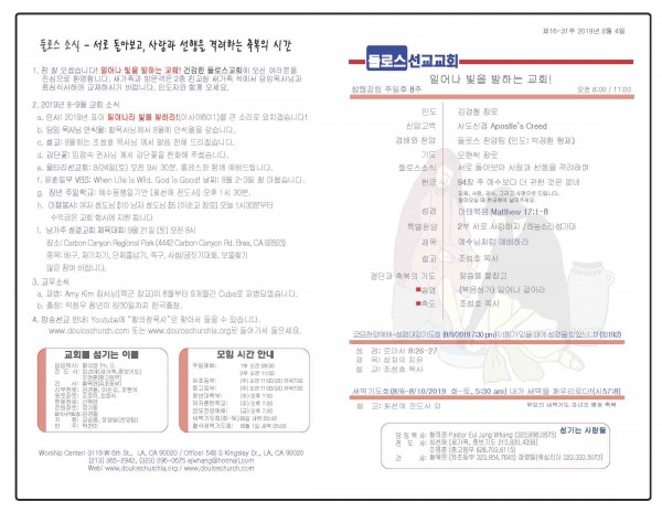 [둘로스선교교회] 11/17/2024 담임목사 취임예배 LIVE