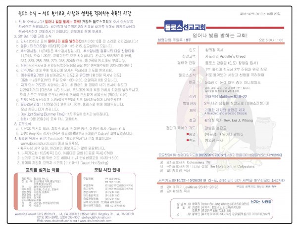 제목: 구원의 은혜에 감사하라! 본문: 로마서 10:9-15. 설교자: 황의정 목사 추수감사절에 감사를 묵상…