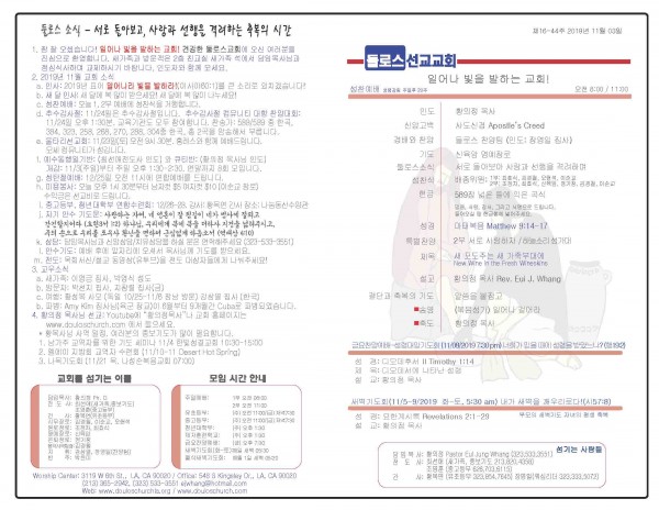 제목: 구원의 은혜에 감사하라! 본문: 로마서 10:9-15. 설교자: 황의정 목사 추수감사절에 감사를 묵상…