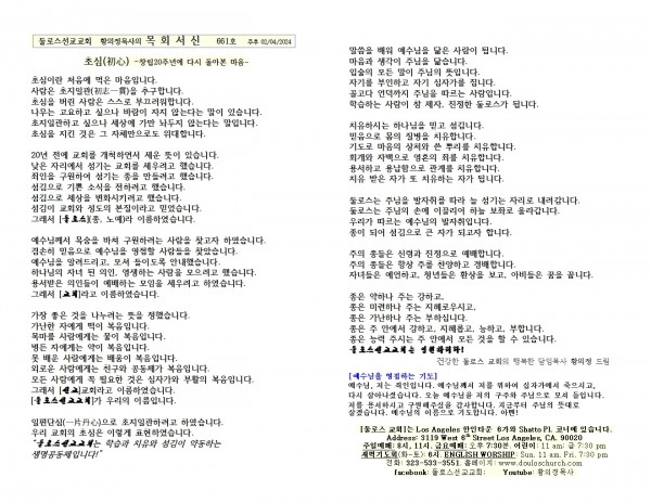 20240204 목회서신-661 초심 창립20주년에 붙여