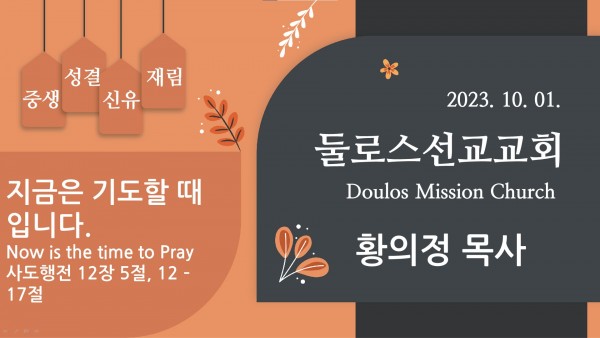 둘로스 선교 교회 사도행전 12장 5절, 12 - 17절