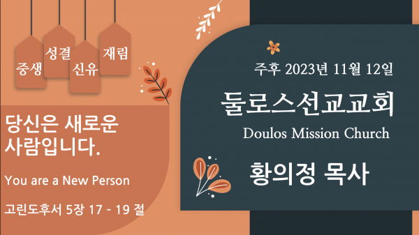 둘로스 선교 교회 고린도후서 5장 17 - 19절