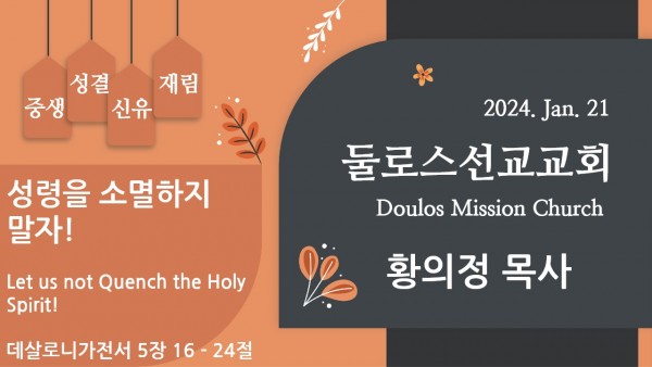 둘로스 선교 교회 - 성령을 소멸하지 말자!