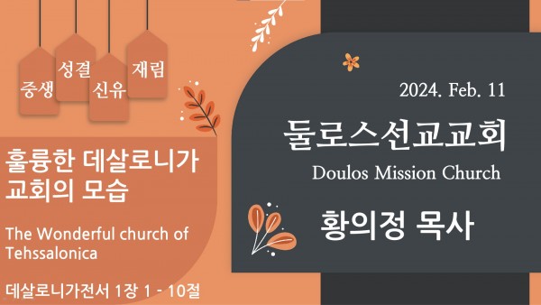 둘로스 선교 교회 데살로니가전서 1장 1 - 10절